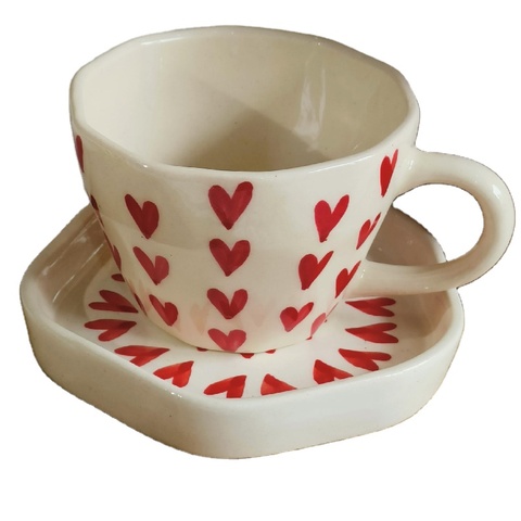 Diseño de corazón Regalo de San Valentín Taza de café de cerámica Juego de tazas de té con posavasos para café Té Leche Cacao
