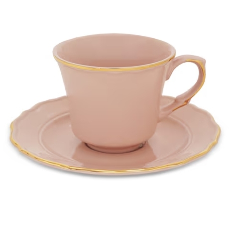 Juego de café con borde de oro rosa de lujo, accesorio de boda para fiesta, taza de té y café de cerámica y platillo