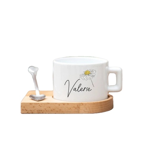 Taza de té personalizada con platillo de madera 3 tazas de café personalizadas con platillo y cuchara