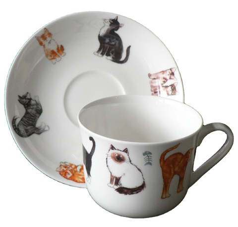 Juego de taza y platillo de desayuno GRANDE para gatos y gatitos Juego de taza y platillo de desayuno