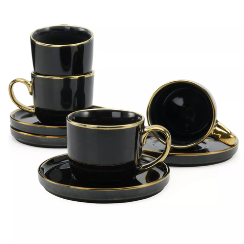 200ml lujo negro y borde dorado boda fiesta cerámica taza de café y platillo