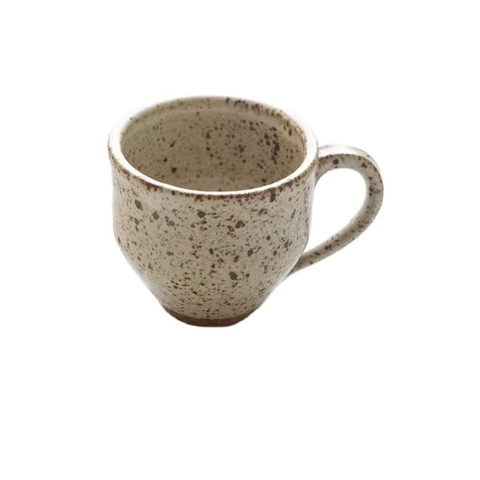 Taza de café espresso blanca moteada, Taza de cerámica hecha a mano con platillo