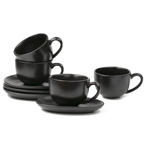Taza de café capuchino de cerámica negra de 6,5 oz con platillos para Au Lait, doble disparo, Latte, Cafe Mocha, té