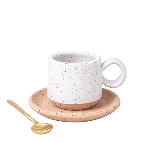 Juego de tazas de café espresso con leche de cerámica moteada nórdica, taza con platillo