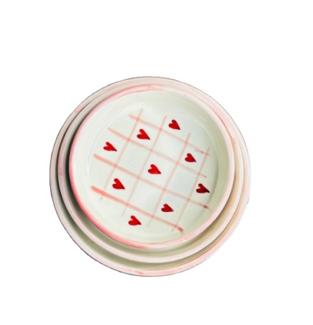 ชุดจานพอร์ซเลนจานกลมเซรามิกลายหัวใจสีแดง (แพ็ค3ชิ้น)