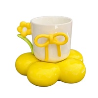 แก้วมัคเซรามิกลายก้อนเมฆน่ารักพร้อมถ้วย3D ตกแต่งโบว์ที่รองแก้วสุดสร้างสรรค์