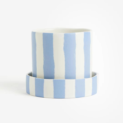 Witte Moderne Gestripte Keramische Bloemkruid Succulente Plantenpot Voor Thuis Met Dienblad