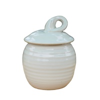 Aardewerk Suikerpot Honingpot In Witte Glazuur Keramische Bus Met Deksel