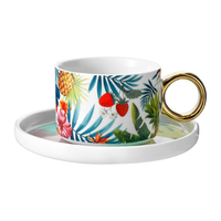 Caneca De Café De Cerâmica Tropical Porcelana Faiança Xícara De Chá Com Coaster E Gold Rim Handle